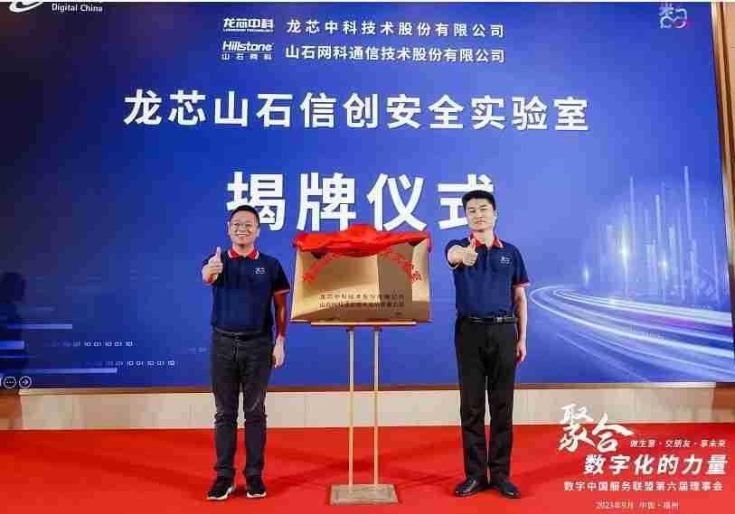 联盟秘书处马郭波对数字中国服务联盟过往的工作进行了总结汇报,,,回顾了联盟近三年来发展壮大历程,,,展示了联盟伙伴间交流合作的创新探索成果:从解决方案资源池建设、、工程师共享计划尝试,,,到全聚合公司平台打造。。。。并简单阐述了对于联盟的未来发展思路的规划与畅想。。。正因有了全聚合的平台,,联盟成员之间的合作再上新的台阶。。。现场,,,两家联盟成员单位领导:山石网科首席运营官叶海强与龙芯中科副总裁张戈上台共同为龙芯山石信创安全实验室举行揭牌仪式。。。。此次合作实现了优势互补,,互惠互利共同发展格局。。双方希望通过发挥各自拥有的品牌优势、、、、地域优势及技术优势进行紧密合作,,,,联合发起成立信防安全实验室,,,,打造双赢可持续发展合作伙伴关系。。。